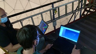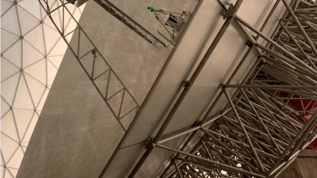 In mehreren Messdurchgängen wurde der 34m große Hauptreflektor sowie der Subreflektor in verschiedenen Neigungen vermessen.