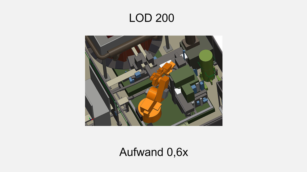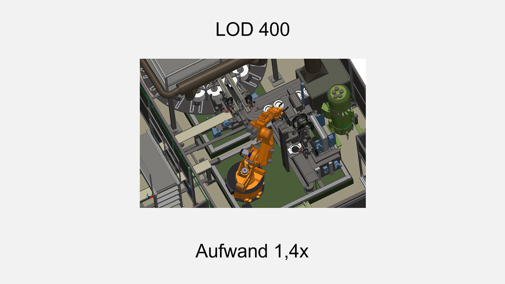 Der Begriff „Detailierungsgrad“ beschreibt die unterschiedlichen Detailstufen, die bei der Erstellung von 2D- und 3D-Modellen zum Einsatz kommen. Häufig wird in diesem Zusammenhang auch die Objektdichte erwähnt, die jedoch von uns unabhängig gesteuert wird. Unser Fokus liegt vielmehr auf den spezifischen Details – dem Level of Detail (LOD) – der einzelnen Objekte, wie beispielsweise Rohren oder Kabelkanälen.