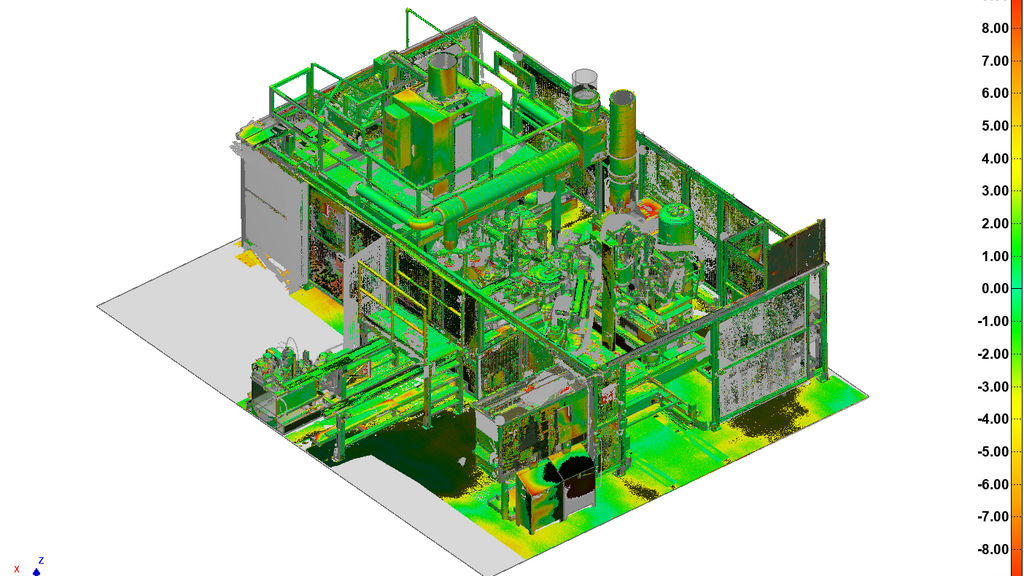 Bei der Abstandsanalyse wird für jeden Punkt in der Punktwolke der kürzeste Abstand zur Oberfläche des CAD-Modells berechnet. Ziel ist es, zu erkennen: