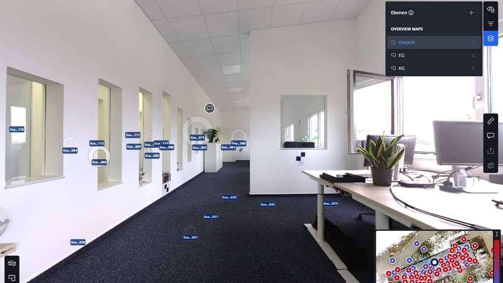 Neben präzisen Laserscanleistungen bieten wir Ihnen auch die passenden Werkzeuge für die Integration der gewonnen 3D-Scandaten in Ihre bestehenden Arbeitsprozesse. Unsere bewährten Visualisierungslösungen ermöglichen Ihnen und allen Projektbeteiligten einen schnellen und sicheren Zugriff auf Ihre 3D-Daten – sowohl über Browser als auch über leistungsstarke lokale Anwendungen. Die übersichtliche Darstellung liefert Ihnen unmittelbar relevante Erkenntnisse für fundierte Entscheidungen und optimierte Planungsabläufe in all Ihren Projekten.